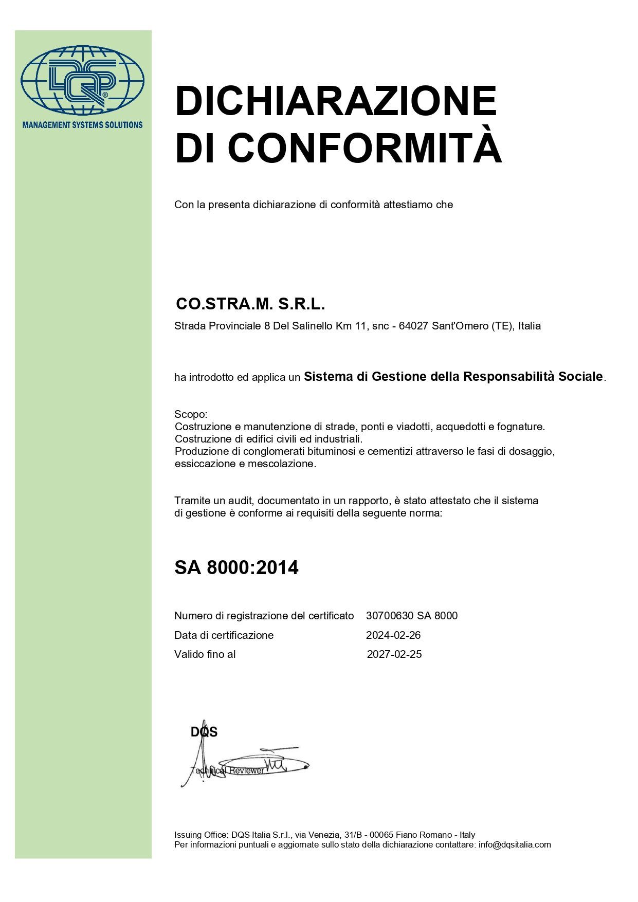 - canale convenzionale, attraverso la costituzione di una casella postale fisica intestata all'Azienda all’indirizzo della sede legale dell’azienda. Tutta la corrispondenza prevenuta a tale casella postale non verrà protocollata, ma verrà consegnata chiusa alla Funzione di Conformità, che provvederà alla sua apertura e al successivo trattamento della segnalazione; Posta al seguente indirizzo: Organismo di Vigilanza c/o CO.STRA.M. Srl – S.P. n.8 del Salinello km.11 – 64027 Sant'Omero (TE);